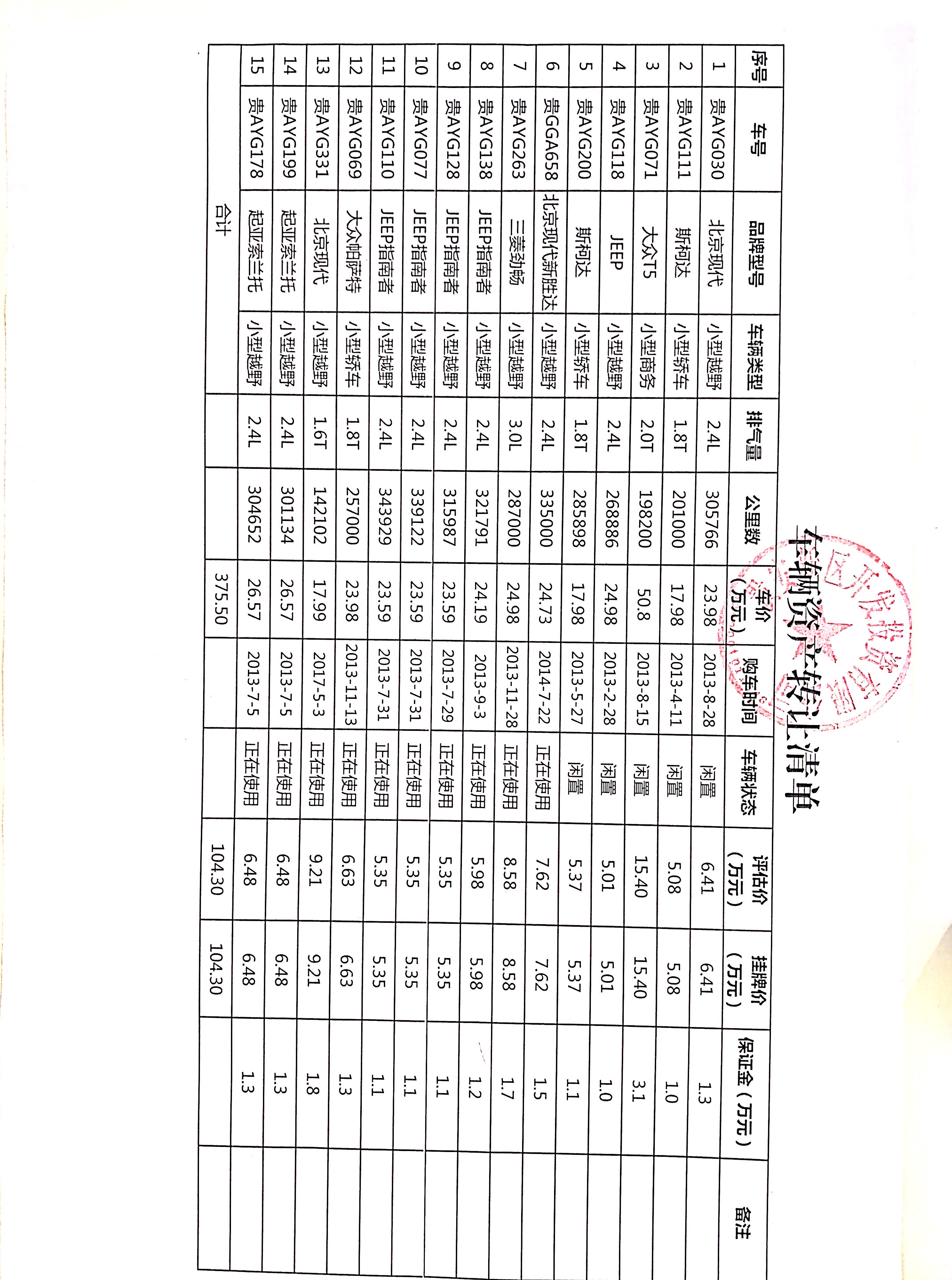 貴安新區(qū)開發(fā)投資有限公司處置車輛一批