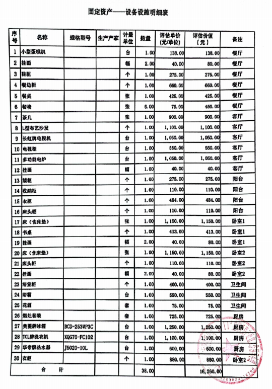 | 固定資產(chǎn) | 設(shè)施設(shè)備 | 詳見附件“設(shè)施設(shè)備明細表” | ||||||