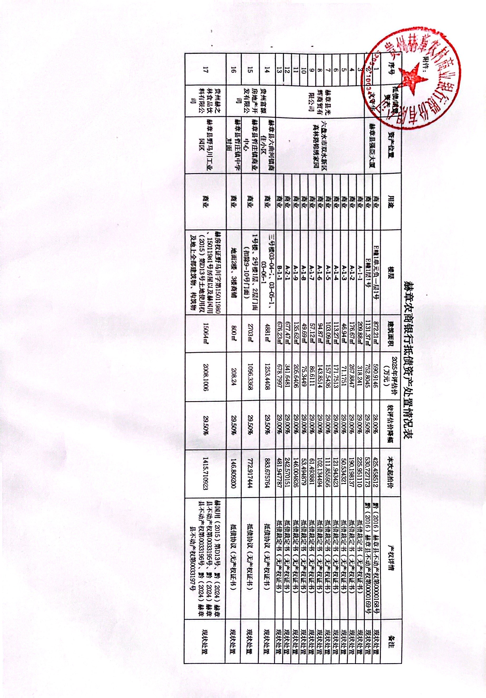 | 標的名稱 | 赫章農(nóng)商行持有的17處資產(chǎn)轉(zhuǎn)讓項目(第二次掛牌) | ||||||